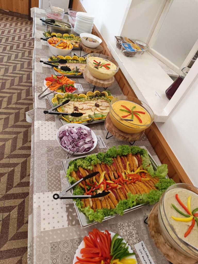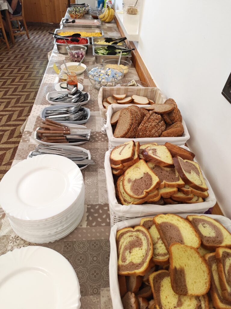 Reggel bőséges svédasztalt kínálunk, ahol a friss zöldségek, gyümölcs, müzli és pékáruk mellett sajtok, felvágottak és egyéb különlegességek bő választékából válogathatnak vendégeink.